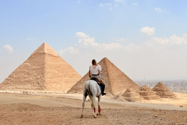 We’ll ride horses in the heart of history and mysterious ancient lands. We’ll learn about both the ancient Egyptian civilization up close and the modern Egyptian country and culture. We’ll have the opportunity to see the pyramids, historical bazaars, museums, the Nile River up close, and ride horses alongside the pyramids. Then, our journey begins into the heart of the Sahara Desert, where we’ll spend two magnificent days staying in stone mansions and riding freely through the desert.