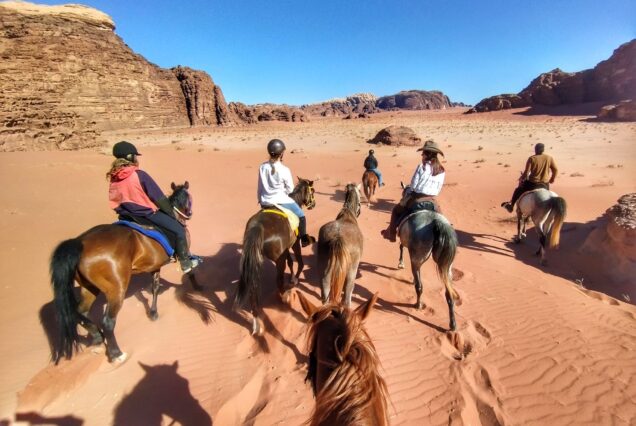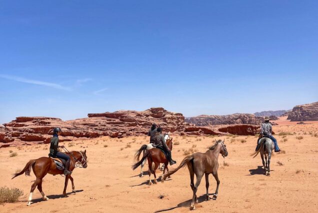 After breakfast at our desert camp, we take our horses, visiting popular spots deep in the desert. After a lunch break with a Bedouin meal, we ride back to our ranch.