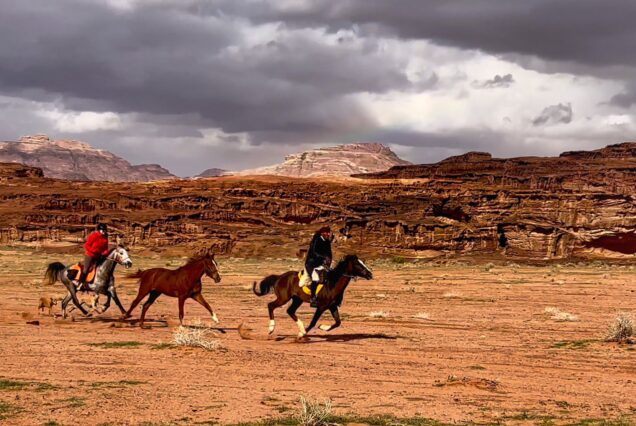 The horses being ridden are predominantly local arabian horse, They are warm-blooded, strong and durable, accustomed to the desert climate and nature.